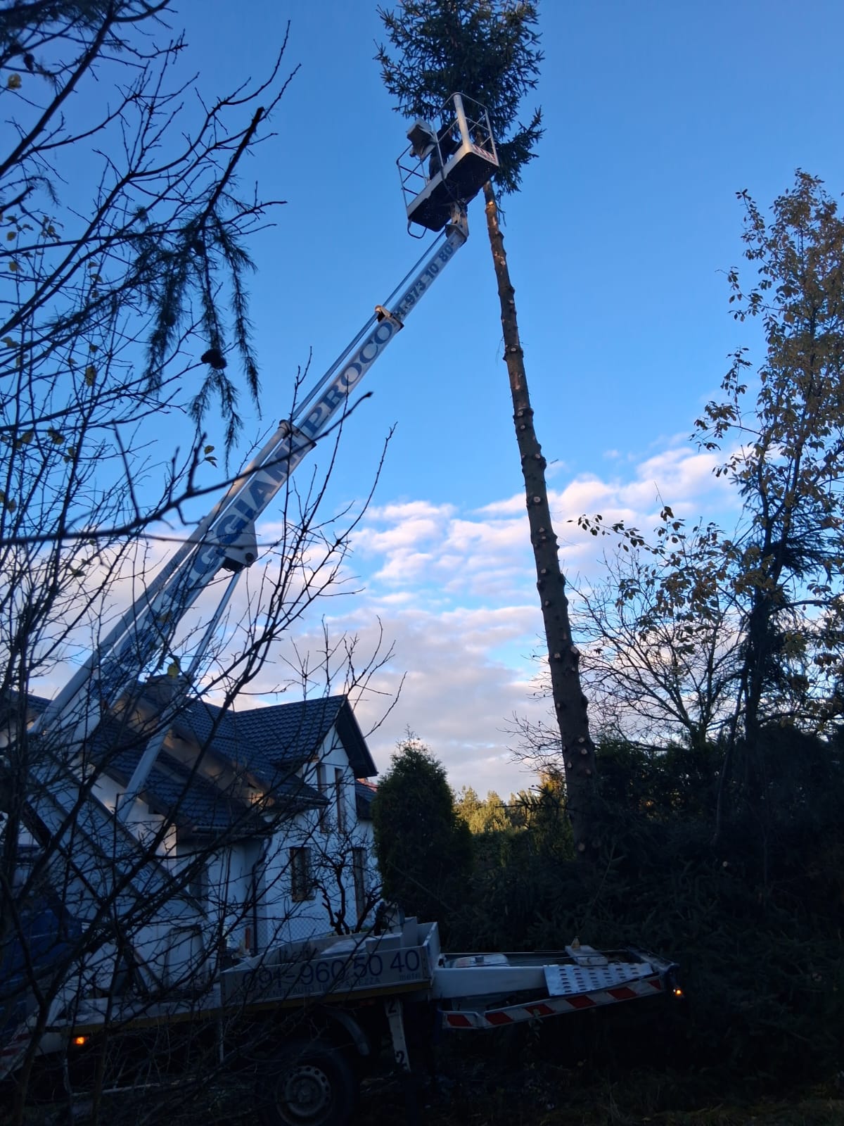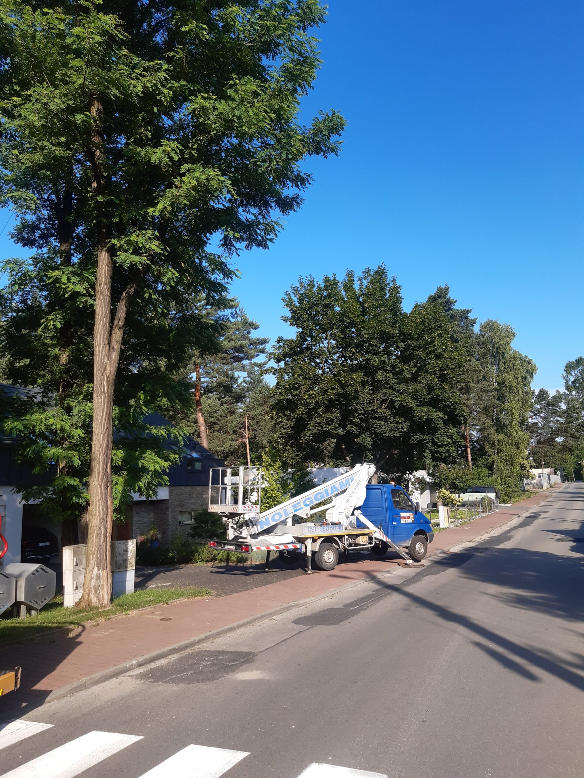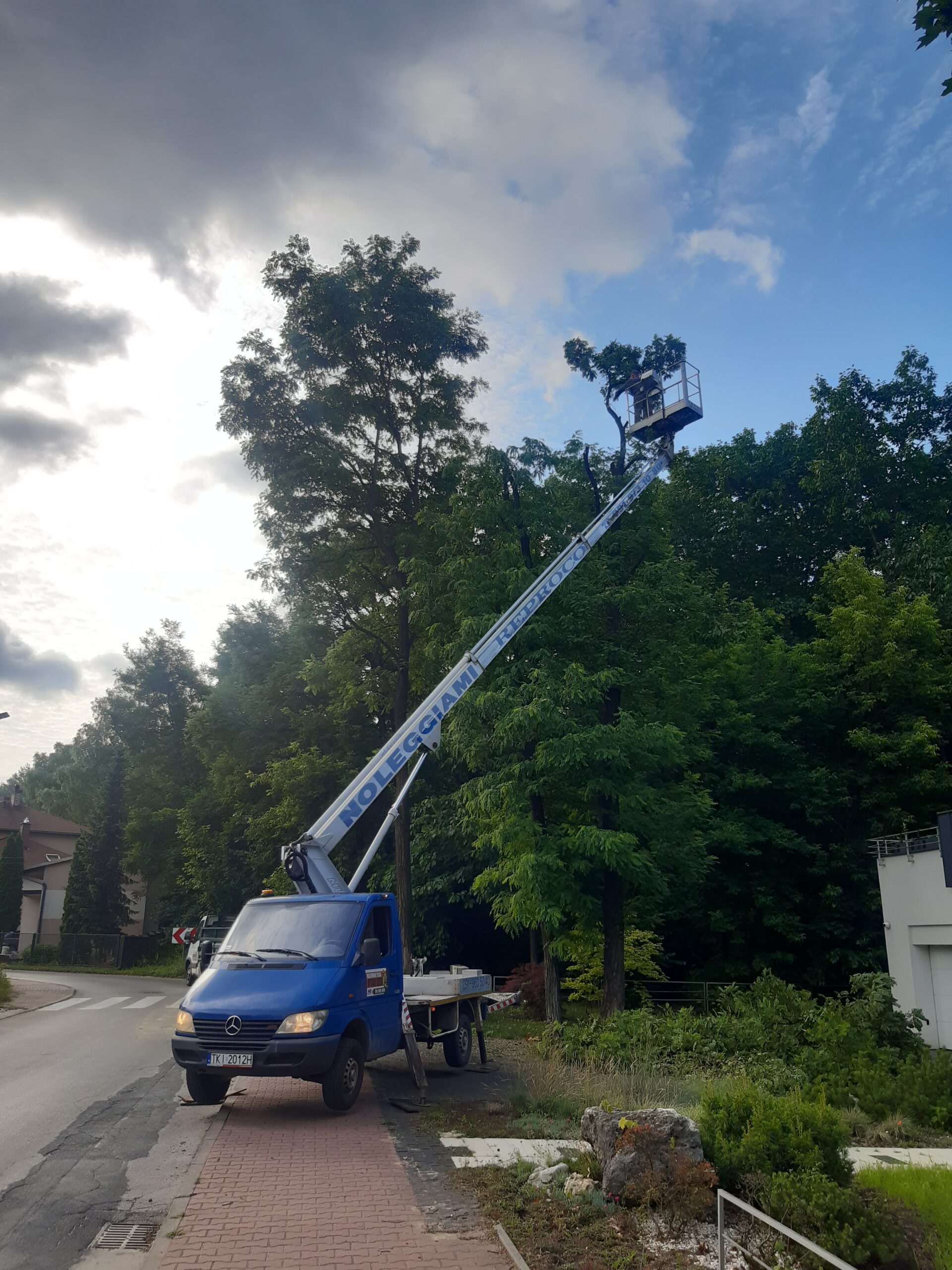 Podnośnik koszowy zapewnia maksymalne bezpieczeństwo podczas pracy na wysokości, a doświadczenie naszej ekipy gwarantuje sprawną i zgodną z przepisami realizację zleceń. Wykonujemy wycinki przy domach, firmach, drogach oraz terenach zielonych.